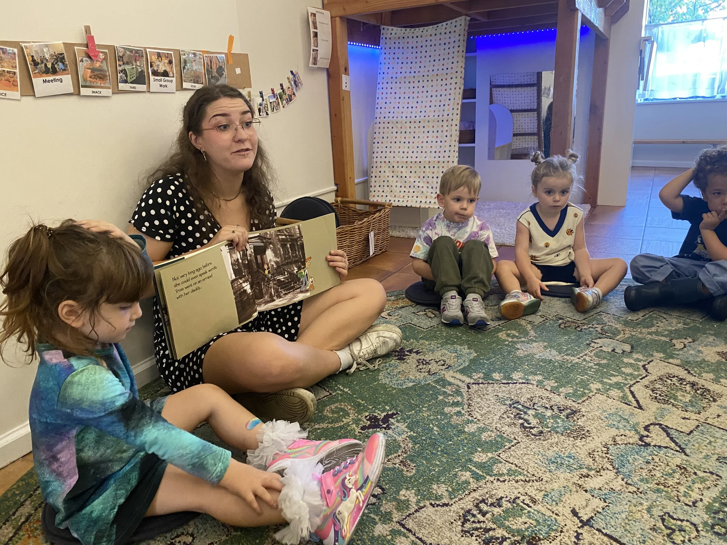 Outside in the yard last week we built rocketships on the rug, drank tea in the kitchen, and danced to Laurie Berkner’s “The Goldfish Song.” Inside the classroom children explored dress up and imaginative play, decorated their cubby labels, and made fresh playdough that smells like sage. Our story last week was “Ming Goes to School” by Deirdre Sullivan, which allowed us to talk about our favorite parts of the day at school and compare our schedule to Ming’s.