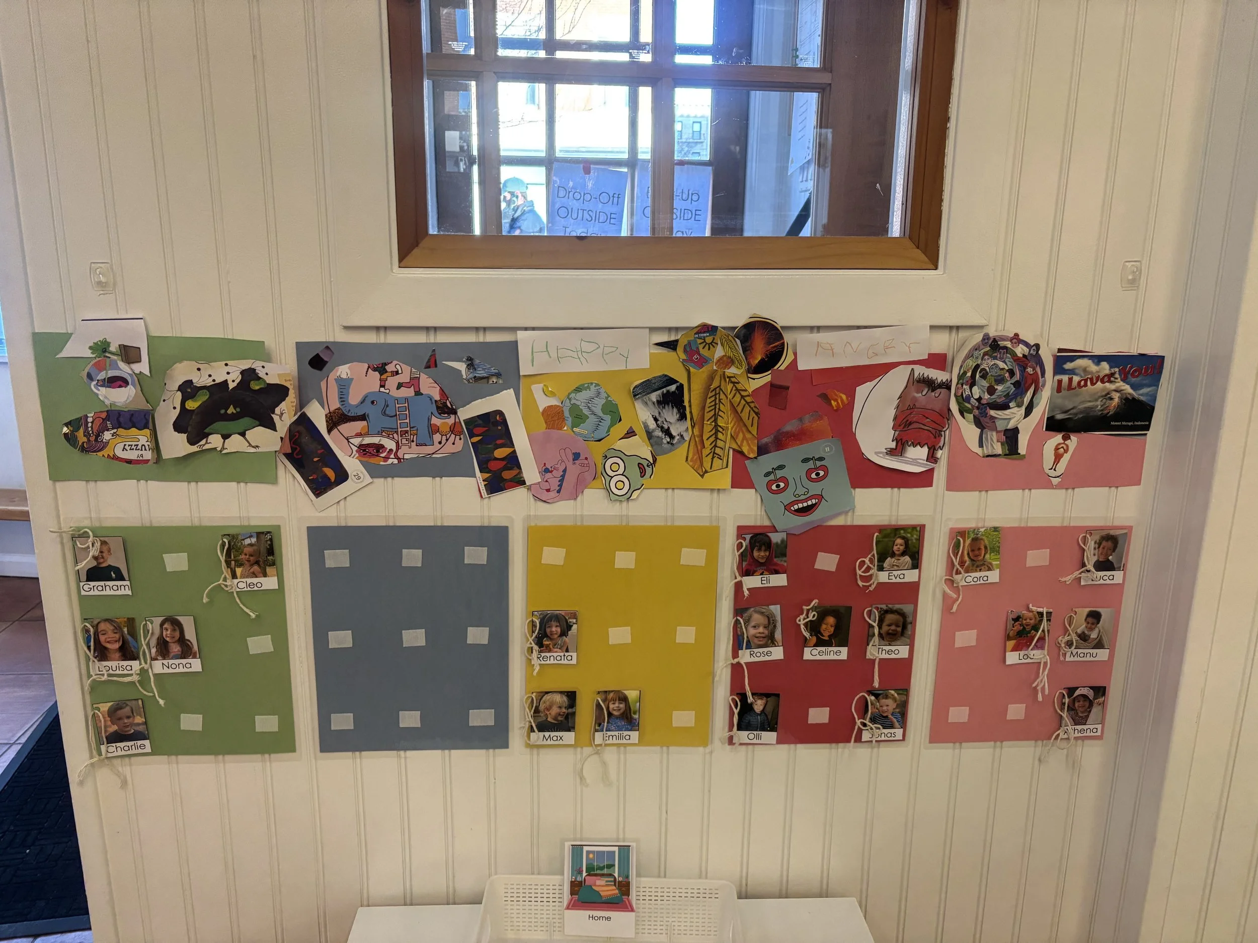 We have continued to explore how we’re feeling by naming feelings such as “calm,” “sad,” “happy,” “angry” and “love.” Each morning, children move their pictures to one of the “feelings collages” we made in small groups, in order to share with the class how they’re feeling that day. If a child’s feelings change over the course of the day, we encourage them to change their picture to match how they are feeling - which can serve as a way to help name, sit with and resolve the feeling.